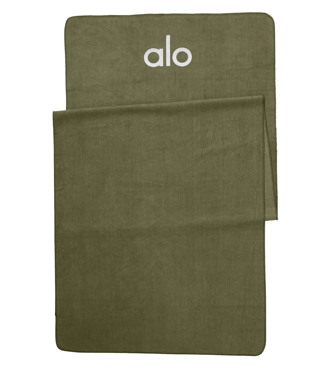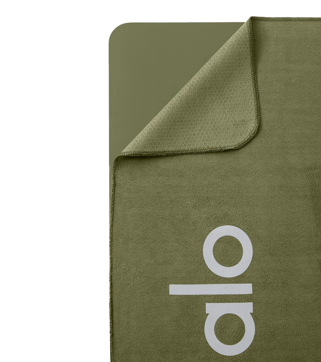 The Alo Yoga Grounded No-Slip Mat Towel features a soft front that absorbs sweat for maximum comfort and stability, plus a silicone-grip pattern backing sticks to your mat for a slip-free practice.