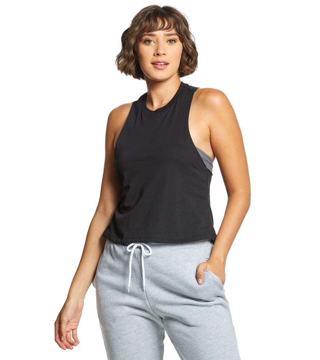 Go back to basics with this Bella + Canvas Racerback Crop Tank. This uniquely soft cropped tank features a classic racerback construction and raw-edge arm holes for unrestricted movements while you workout in the studio or gym.
