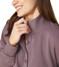Coast-to-coast comfort in a soft and cozy top layer, for that cuddled-up-at-home feeling no matter where you go. Button closure neckline with relaxed fit for a never-out-of-style aesthetic. Wear the Beyond Yoga East Coast Button Pullover over tops or under your outerwear on exceptionally chilly days. Great for transitioning in (and out) of winter as an extra layer.