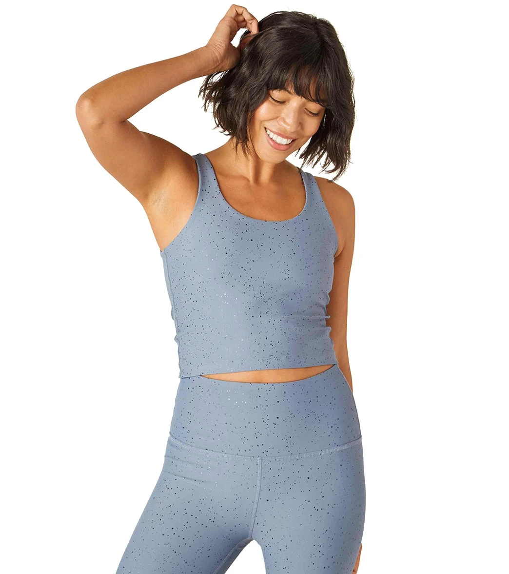 Sparkle and shine during every workout in the Beyond Yoga Keep it Simple Cropped Yoga Tank.