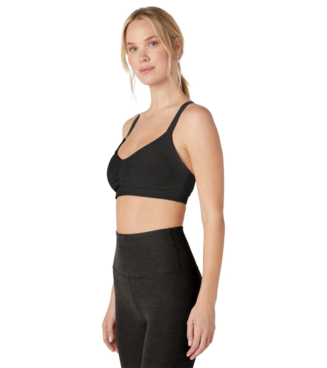 Where performance meets comfort, you’ll find the Beyond Yoga Spacedye On Center Bra. With gathered detail, front and center, power mesh interior liner and removable padding offers enhanced support for tough workouts and beyond.