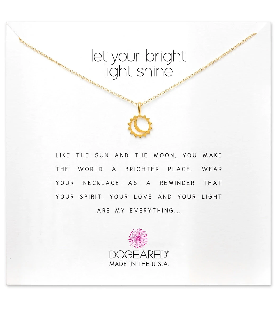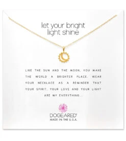 Showcase your true self while wearing the Dogeared Let Your Bright Light Shine, Sun and Moon Necklace.