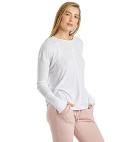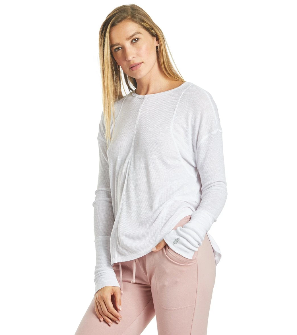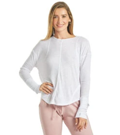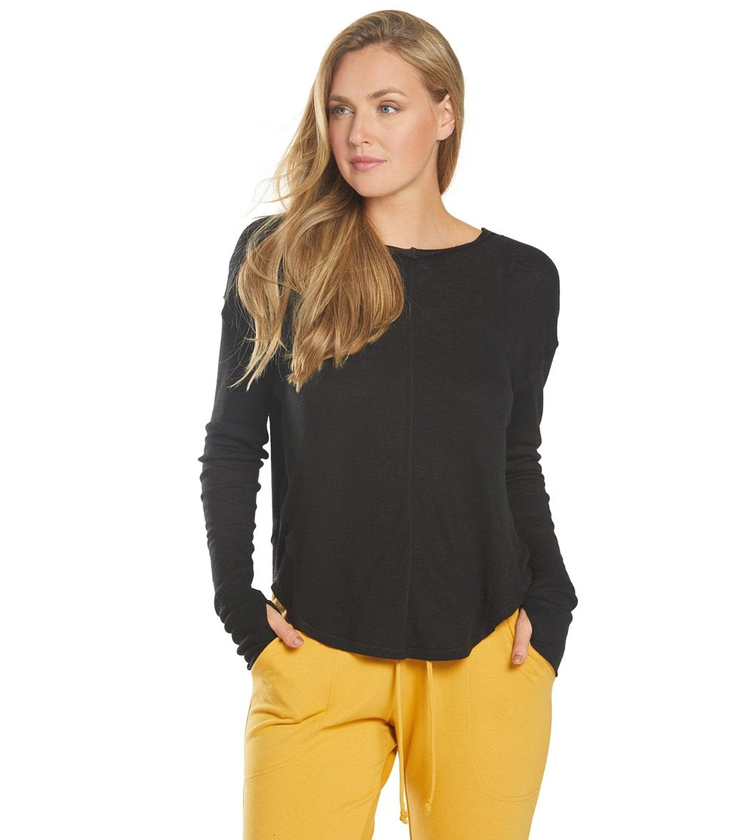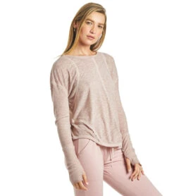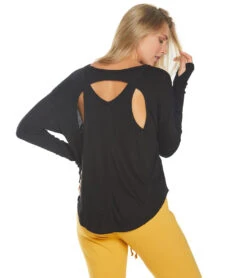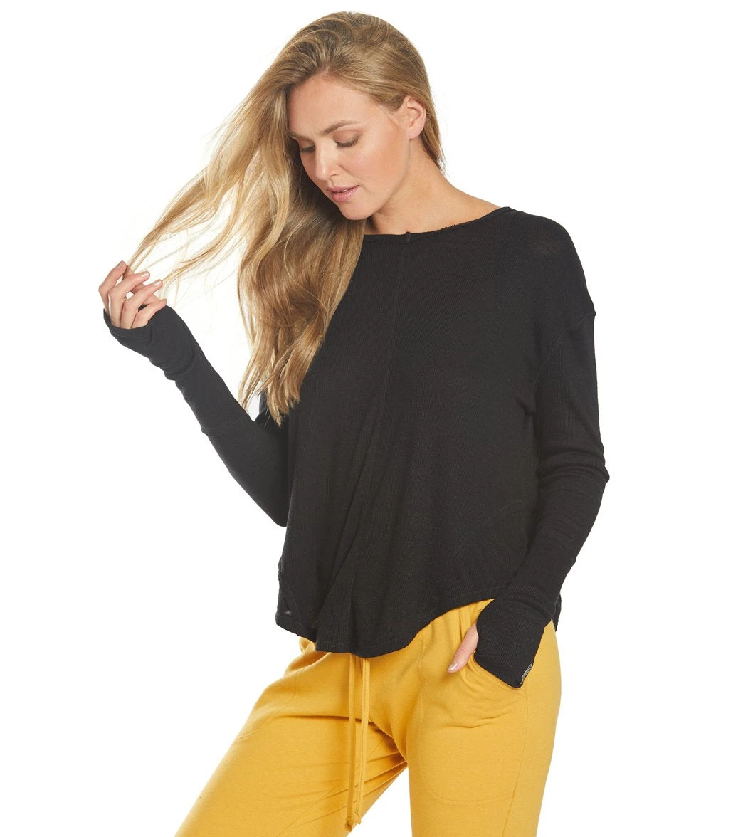 Workout during breezy evenings with the Free People Movement Lay Up Long Sleeve featuring stylish back cutouts and thumbhole accents.