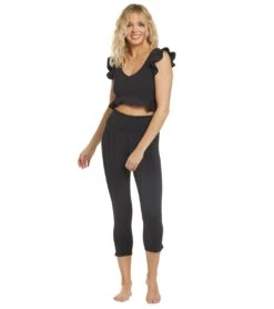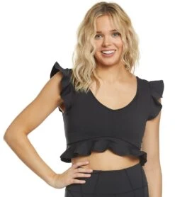 Switch up your usual workout wardrobe with ruffles. The Free People Movement Virgo Performance Yoga Crop Top is a feminine must-have this season.Â