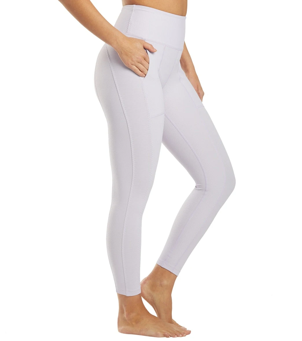 Support yourself in the Free People Ruffle Me Up Yoga Leggings, which offer a compressive fit and high waistband that holds you in, plus convenient hip and waist pockets.