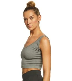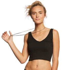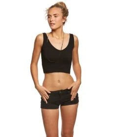 Wear the Free People Solid Rib Brami Yoga Crop top by itself for a cute, clean look, or under your favorite top as a extra layering piece. The v-neck front and thick back straps create a chic, modern design.