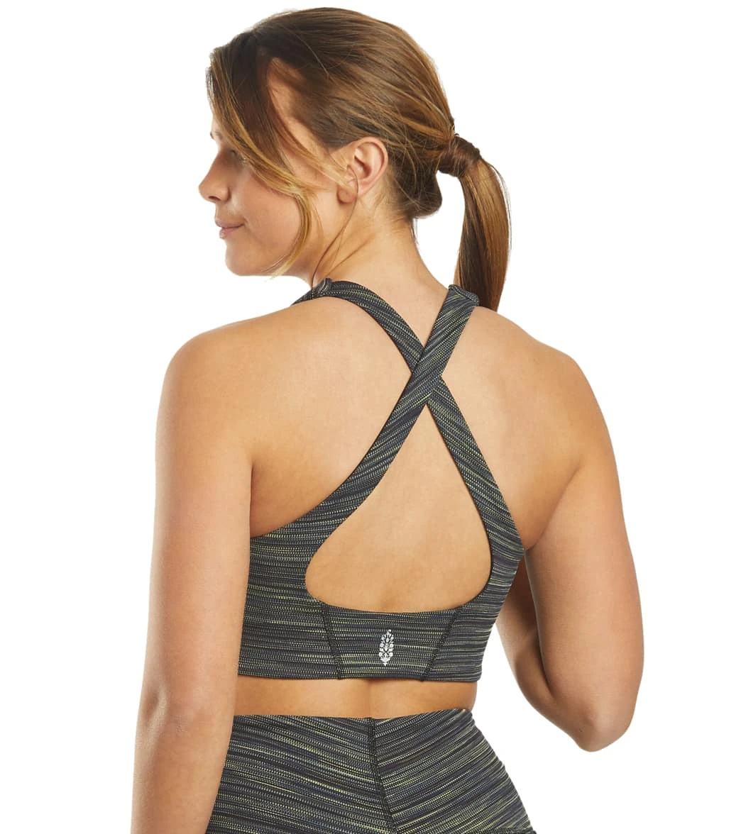 Strut your stuff in the Free People Strut Yoga Sports Bra, which features a stylish cutout in the front, crisscross straps in the back, and allover striped print.