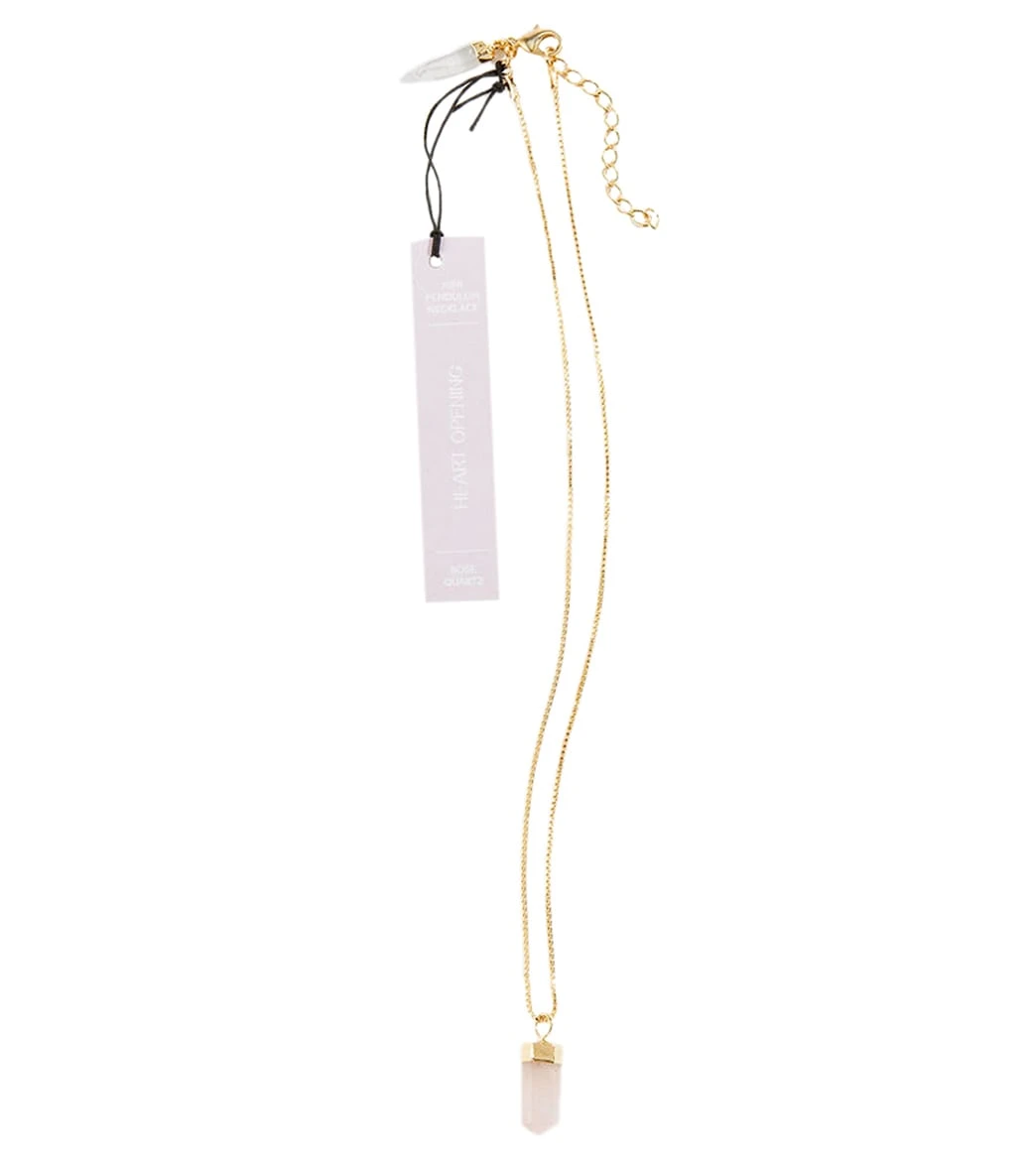 • Features a rose quartz point as the mini pendulum and a decorative clear quartz point at back clasp