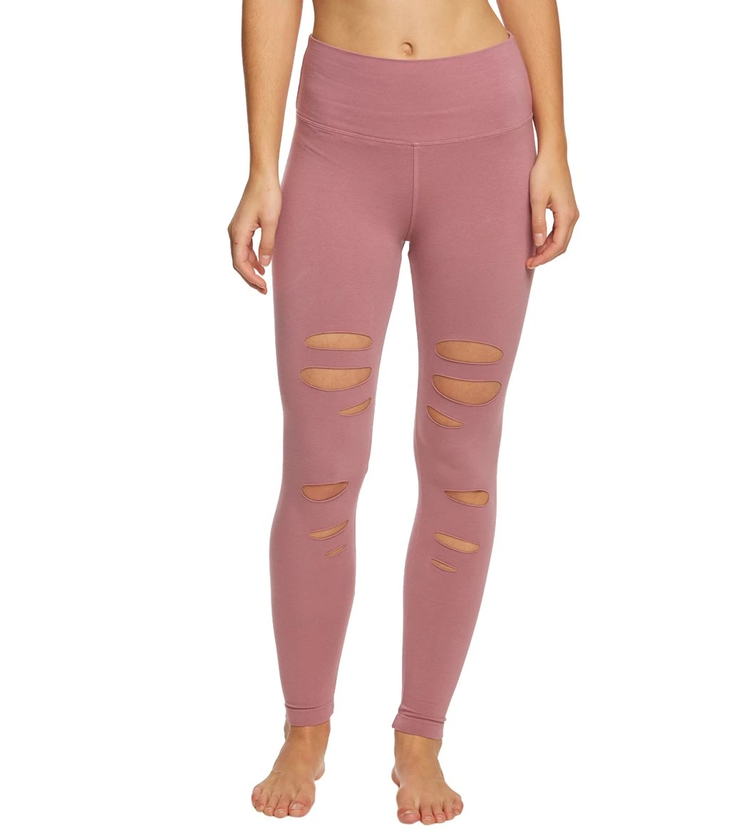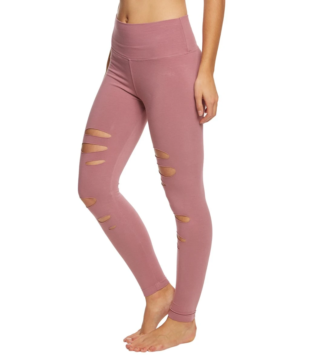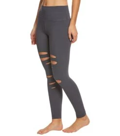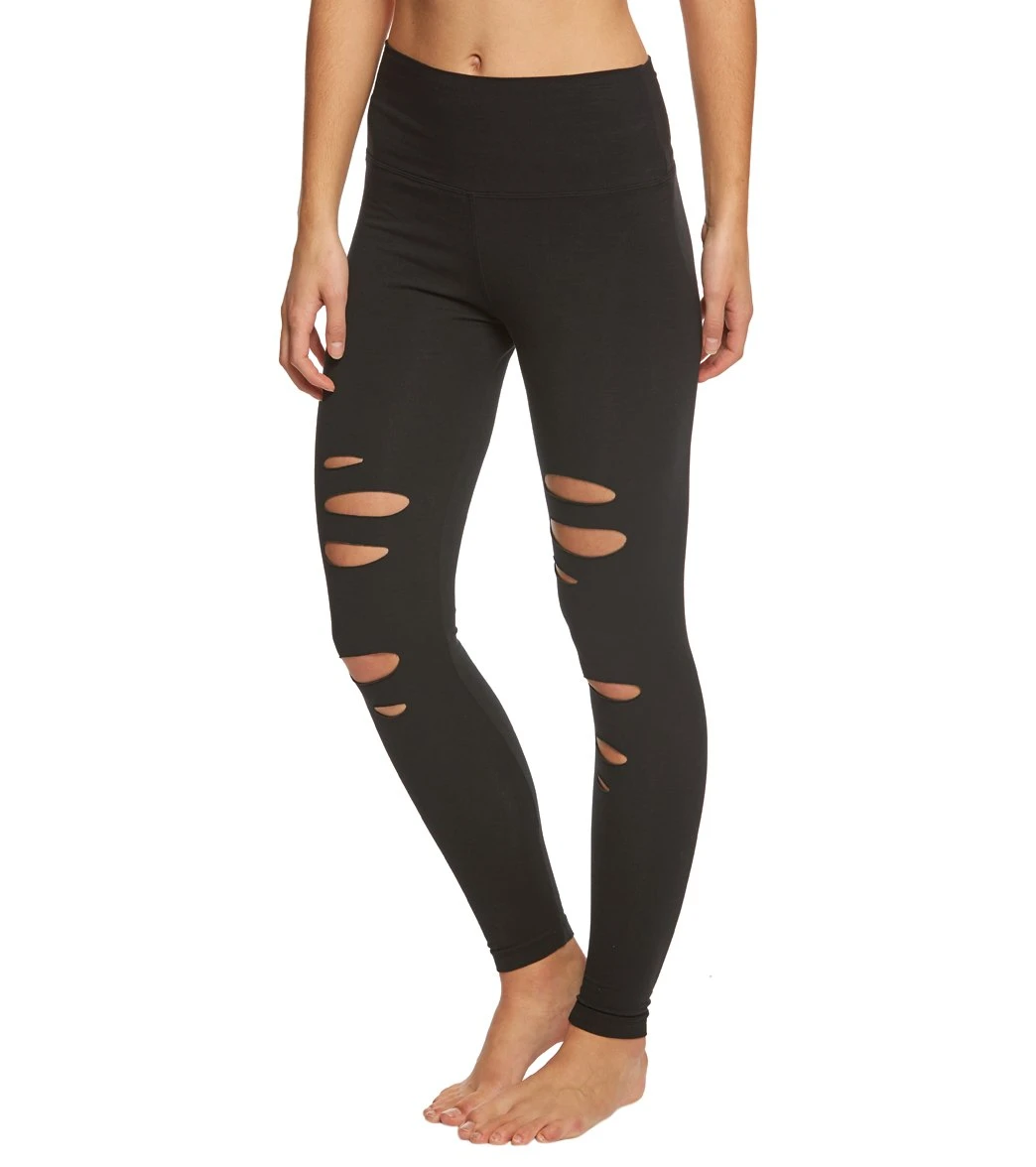 - Style Features:Â High rise leggings, Laser slits down front legs
