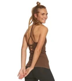 A simple front meets a stylish back in the Hard Tail Kat Back V Tank with a built-in bra. Its fitted silhouette hugs curves while still leaving room for movement. The lace-up back design adds flare.