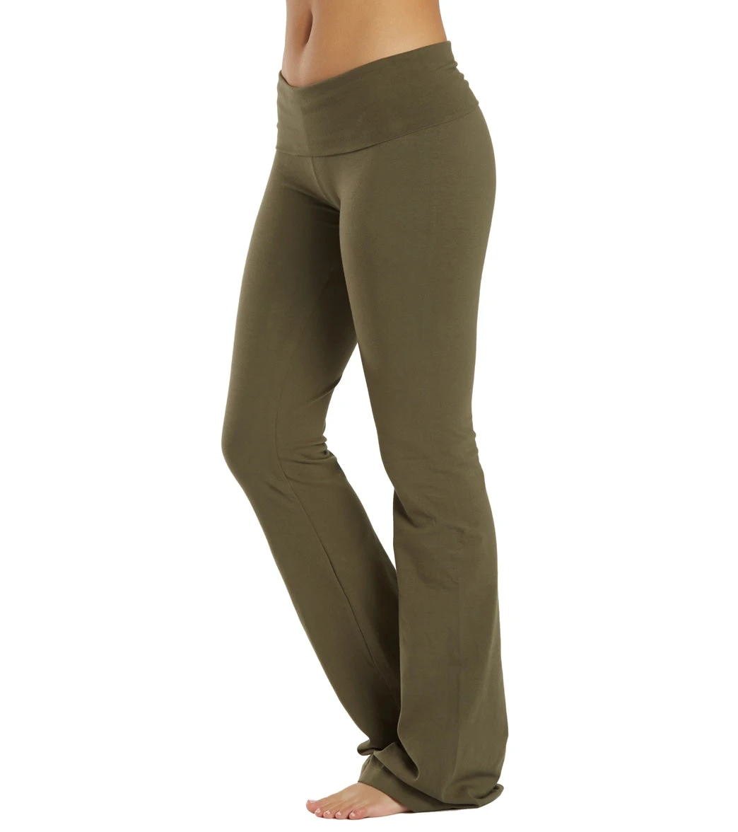 Comfort is key for the Hard Tail Rolldown Superlow Bootleg Flare, featuring a foldover waist and slightly flared leg.