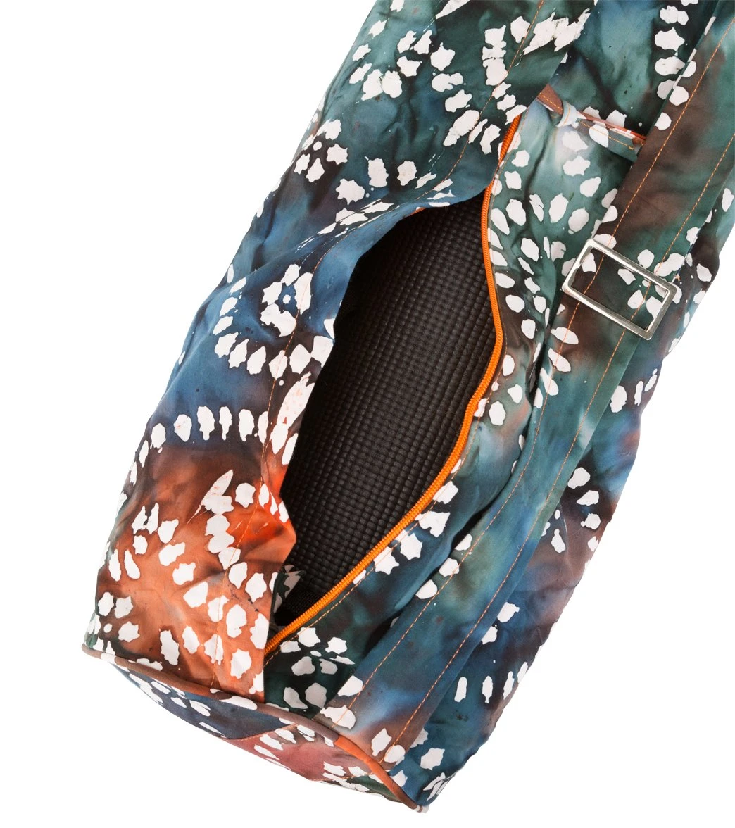 Carry your yoga essentials in style with this Batik Yoga Mat Bag. A tie-dye inspired print covers this bag that fits most yoga mats.