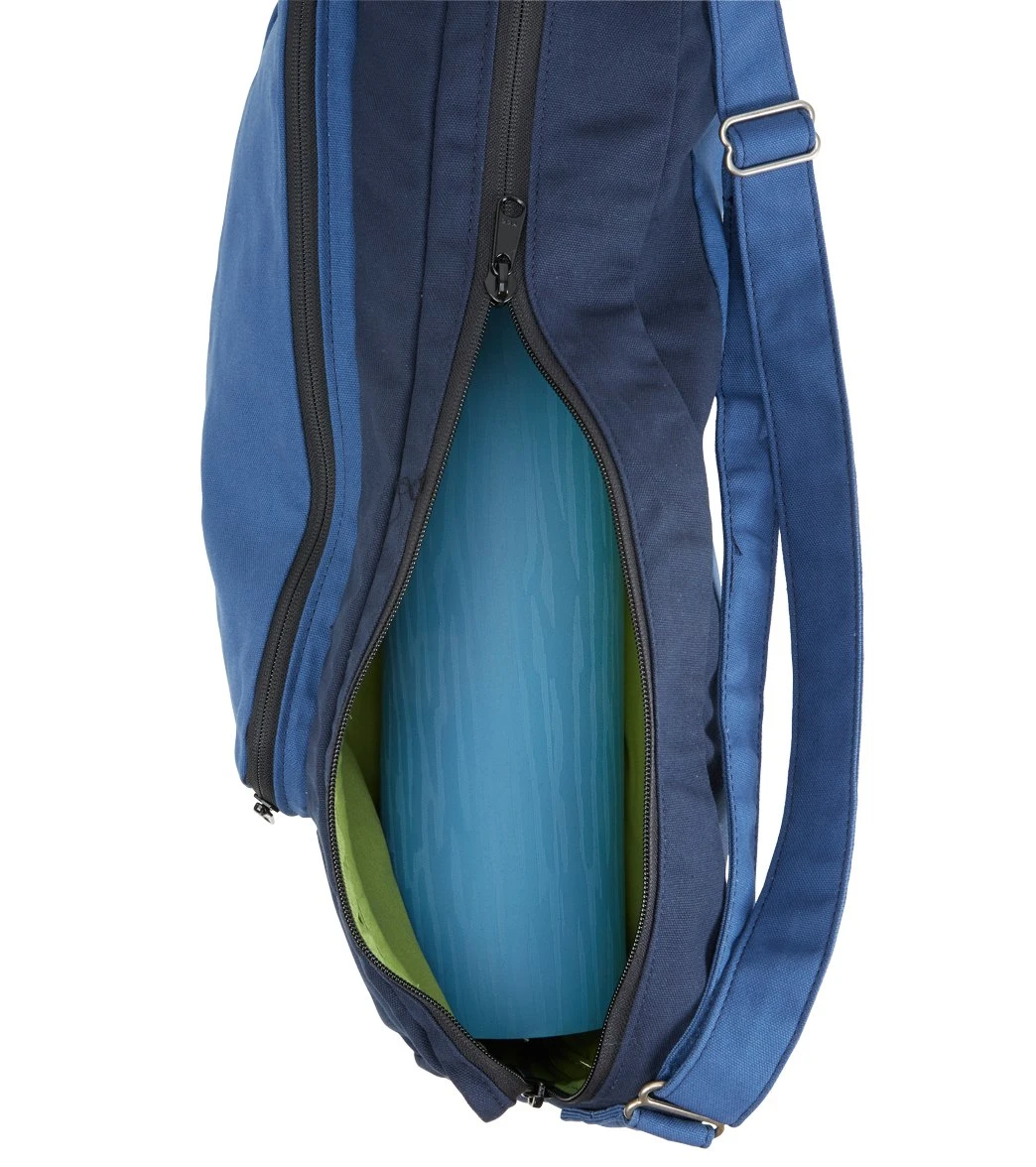 - Includes one large main compartment that can hold a mat, block and towel altogether, a smaller compartment for personal items, and an internal pocket.