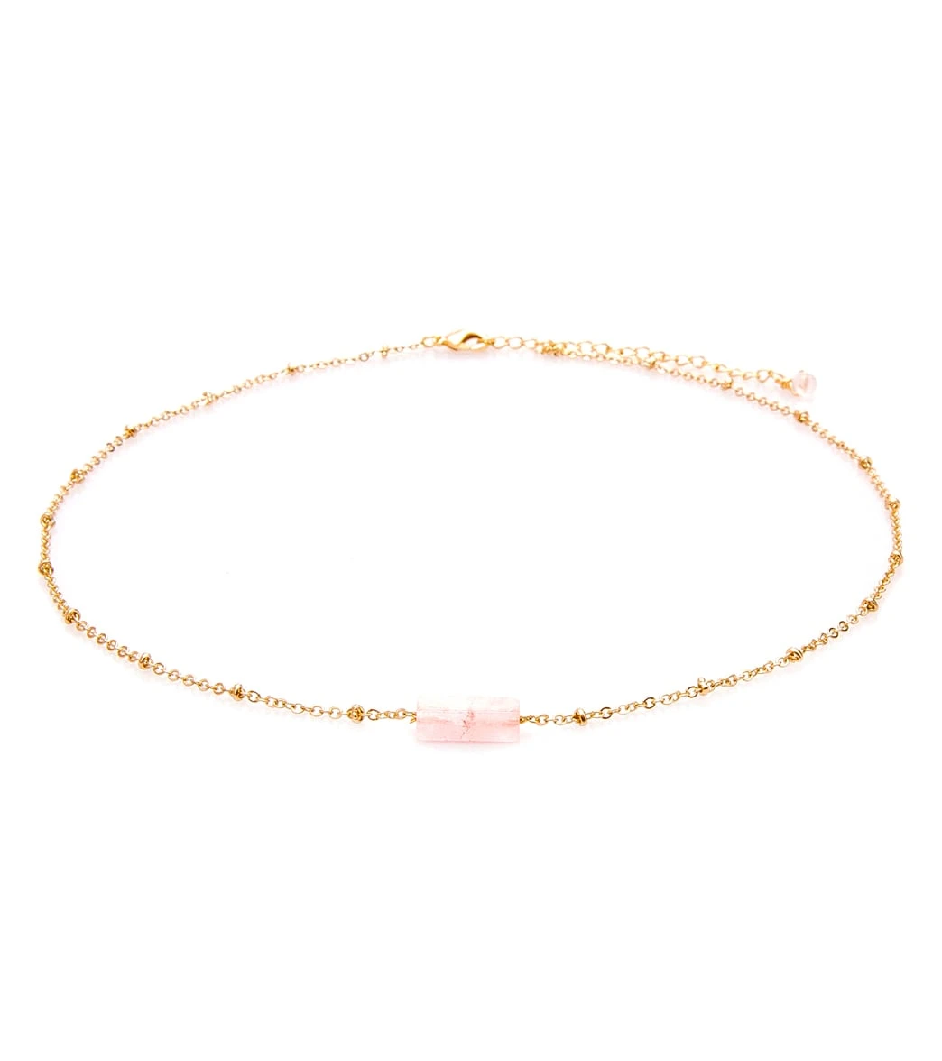 The stone of the heart, Rose Quartz, featured on the Lotus and Luna Love Rose Quartz Stone of the Earth Necklace, dissolves emotional wounds and fears and allows the wearer to fully give and receive love.