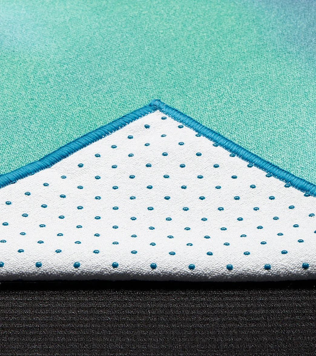The Manduka Yogitoes+ RepreveA® Yoga Mat Towel, 71″ is made from 11 post-consumer recycled plastic bottles which contribute to reducing the billions of bottles thrown away each year and thousands of years they take to degrade. Ideal for hot yoga or any sweaty practice and durable enough to take anywhere: the beach, the gym, Pilates or traveling.