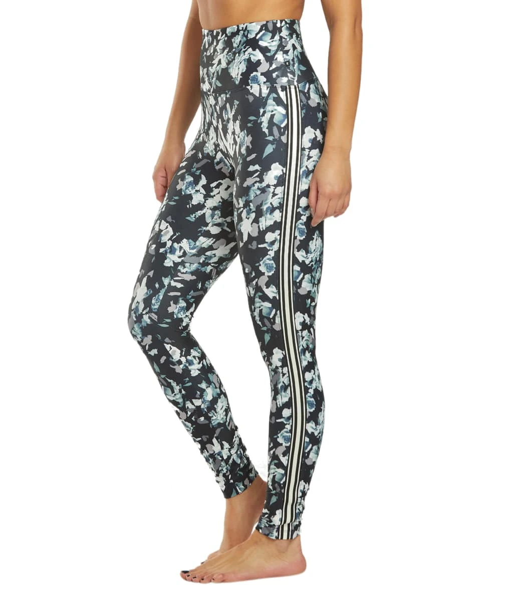 The Marika Joanne Track Yoga Leggings features a feminine floral print, contrasted with a sporty side stripe.