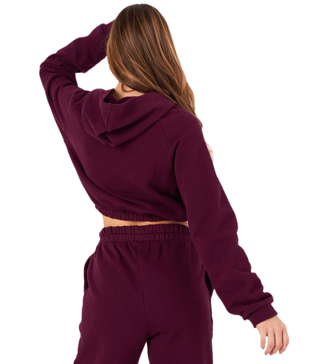 - : Pullover hoodie. Solid. Cropped length. Cinched hemline with adjustable ties.