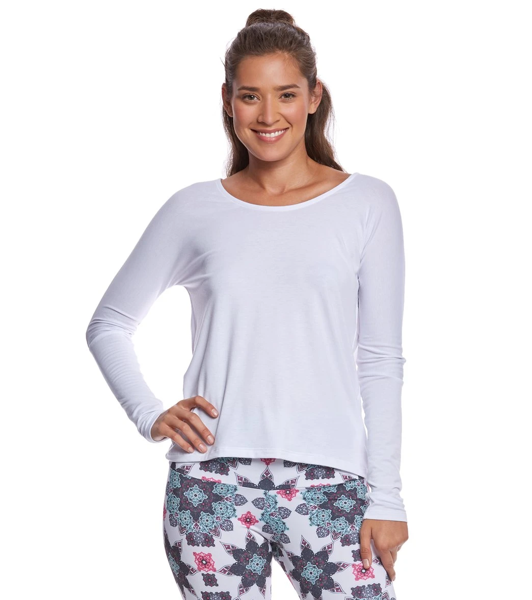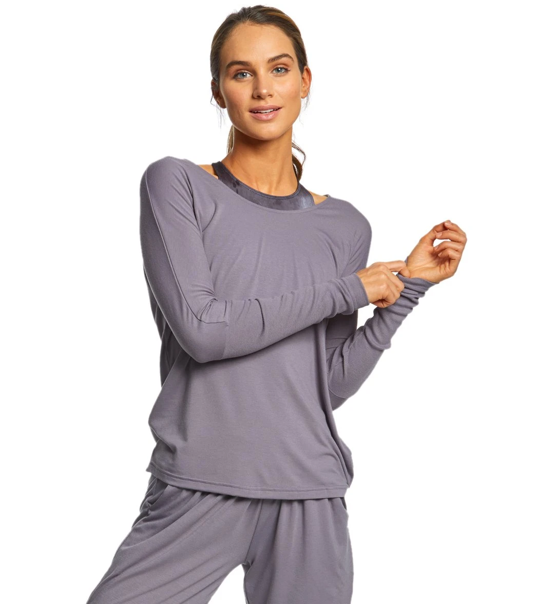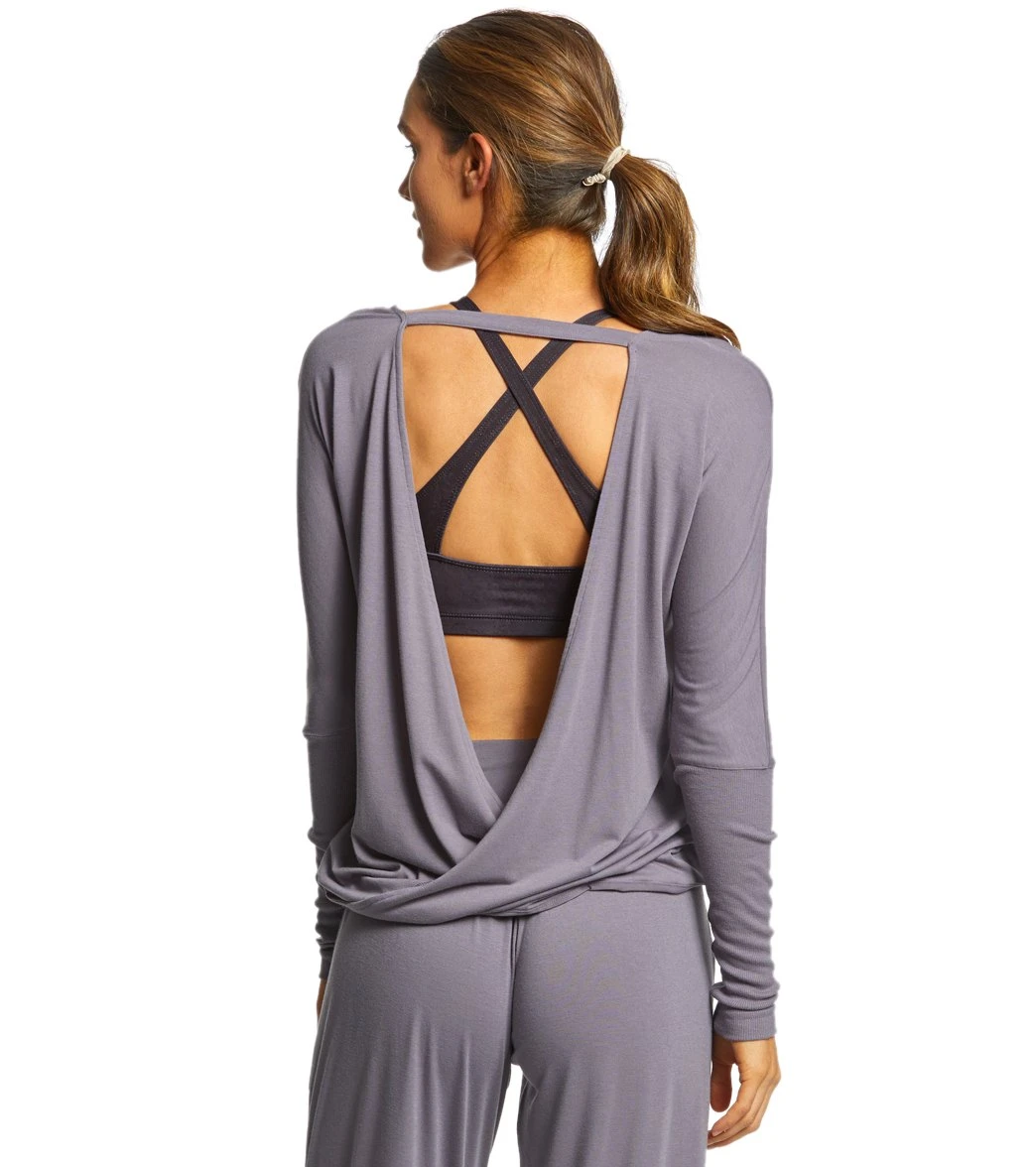 Drape yourself in comfort and style. This Drapey V-Back Long Sleeve Coverup has an open back detail so you can show off your sassy strappy sports bras or tank tops.