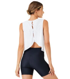 Great for layering, the Onzie Runner Tank boasts a feminine look, thanks to peek-a-boo back cutouts and tulip-shaped hem, plus a functional feel with a lightweight, quick-drying fabrication.