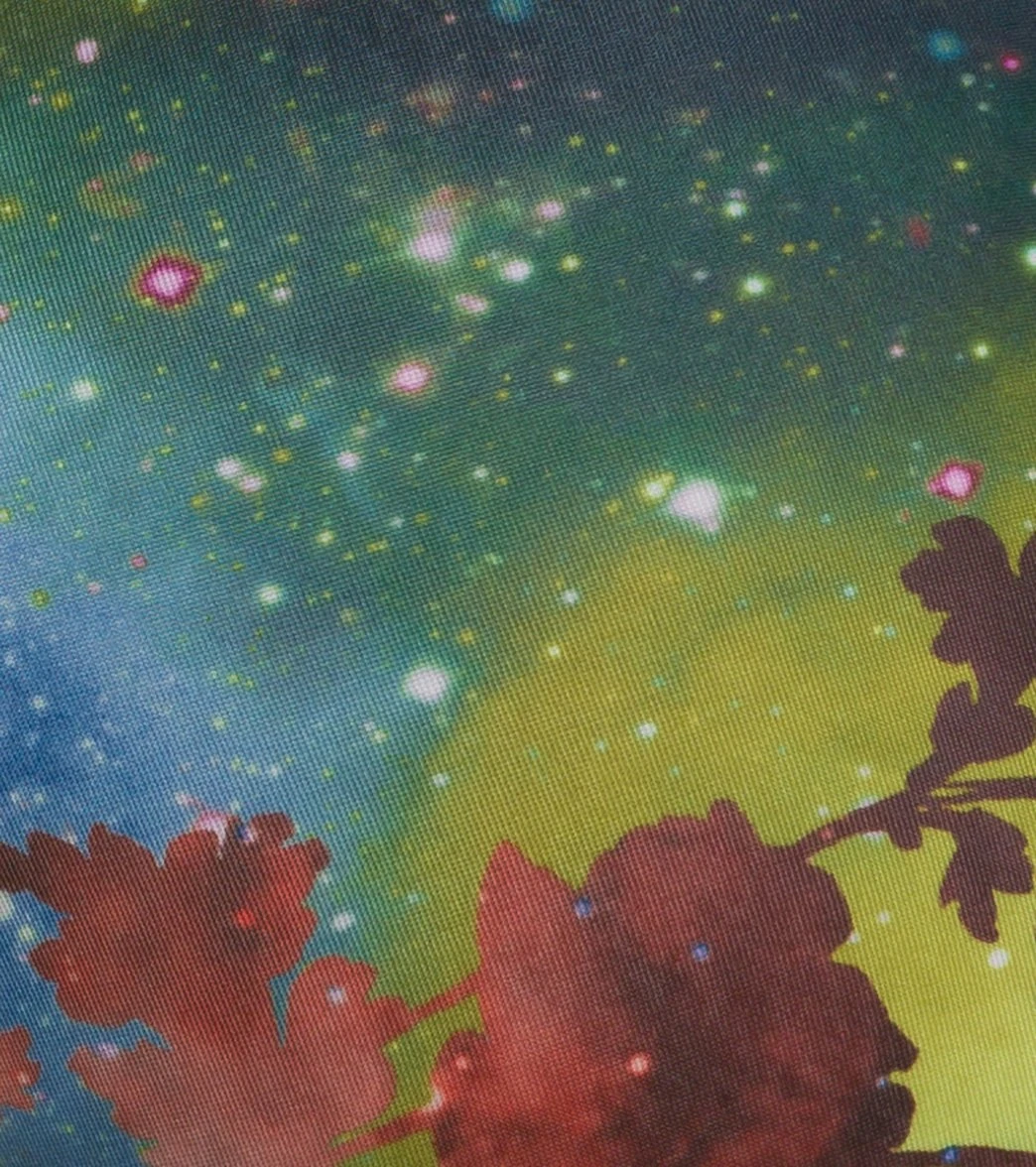 - Shiny, metallic treatment on some colorways.
