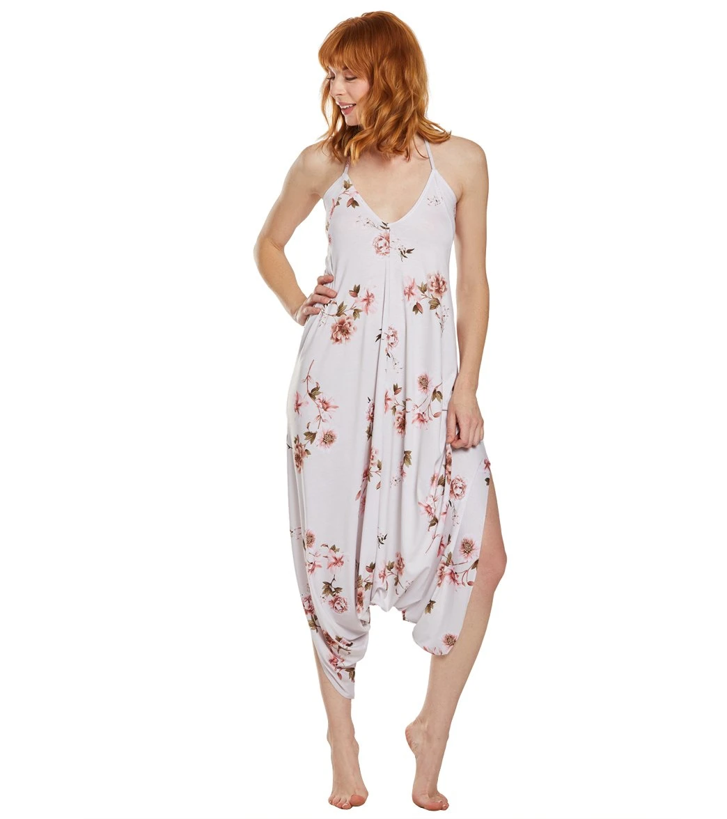 We are in love with this Onzie Tica Romper. Made from super soft tri-blend fabric, this romper features a v-neck front, high leg slits on each side to show off some skin and a t-back design with an adjustable tie for a beautiful look you can on any warm sunny day.