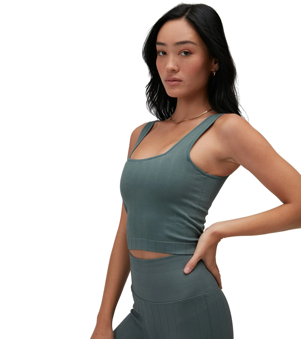 Sporty, chic and ultra compressive — the Spiritual Gangster Amara Wide Rib Seamless Bra is engineered with a tonal wide rib for a flattering, elevated vibe. Updated for the season in a new leaf hue, pair it with the Amara Seamless Biker Short for the ultimate hook up.