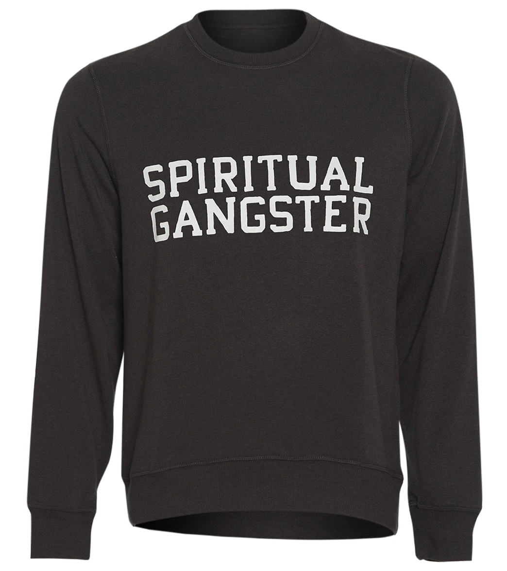 The Spiritual Gangster Men’s SGV Varsity Fleece is a classic pullover with a jersey-lined hood, ribbed trim, vintage feel, and the brand’s signature “Spiritual Gangster” graphic front.