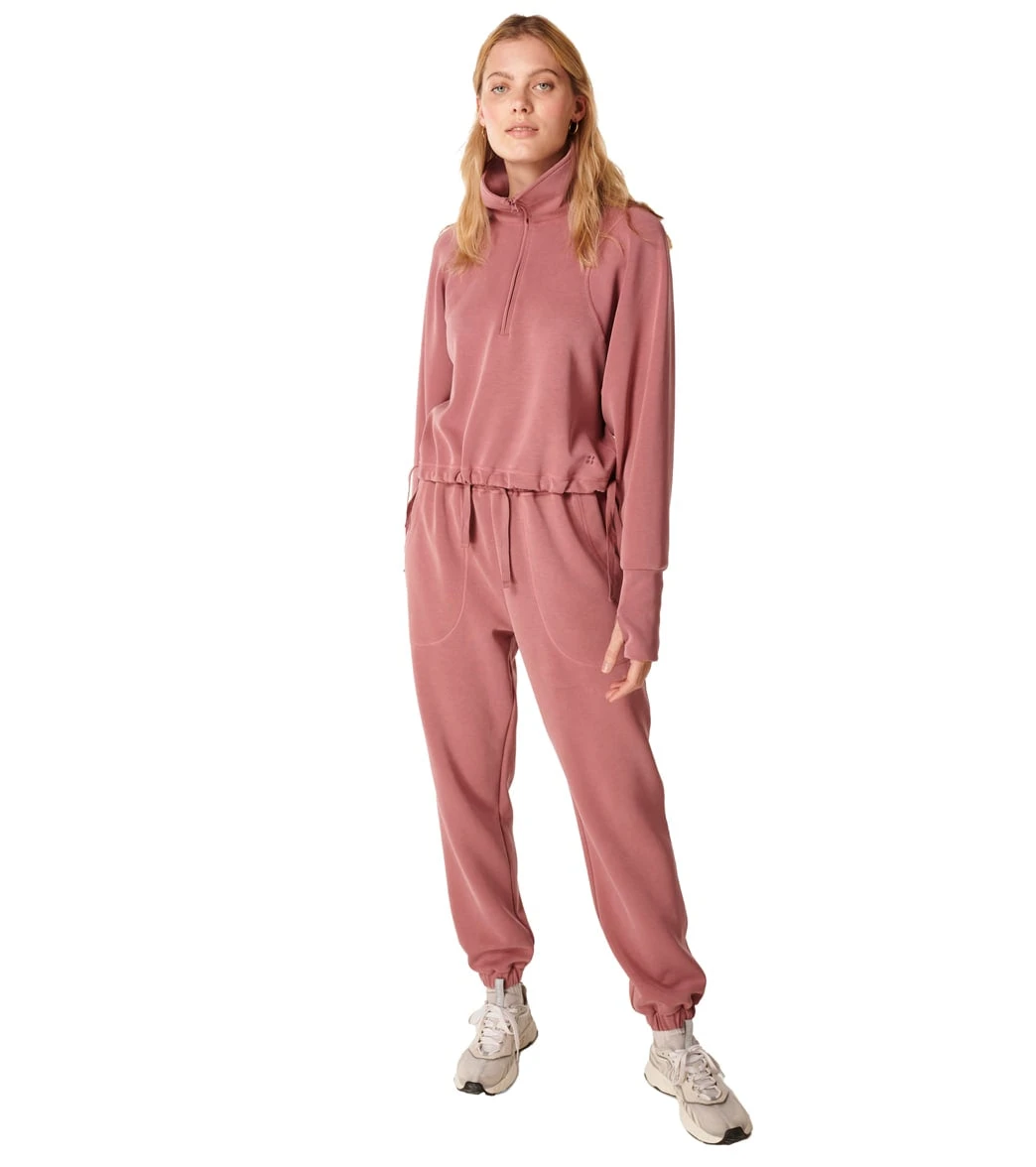 Channel cool-girl vibes in the Sweaty Betty Sand Wash Half Zip Sweatshirt, which features exaggerated cuffs with thumbnails, cropped cut, and adjustable waist.