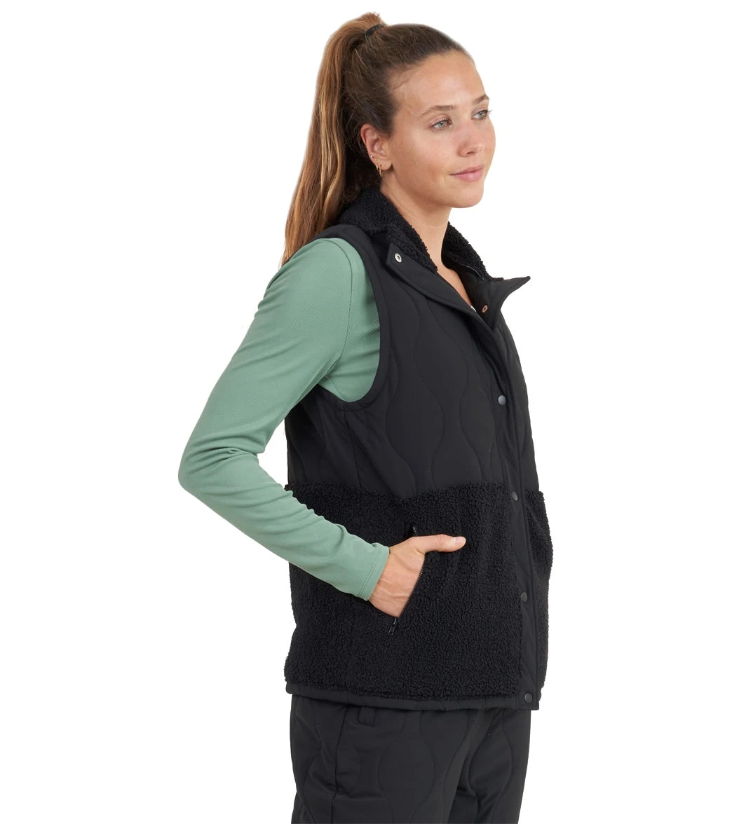 Perfect for when things start to get chilly, the Thrive Societe Teddy Quilted Vest has sherpa lining and hemmed detail for extra warmth and comfort.