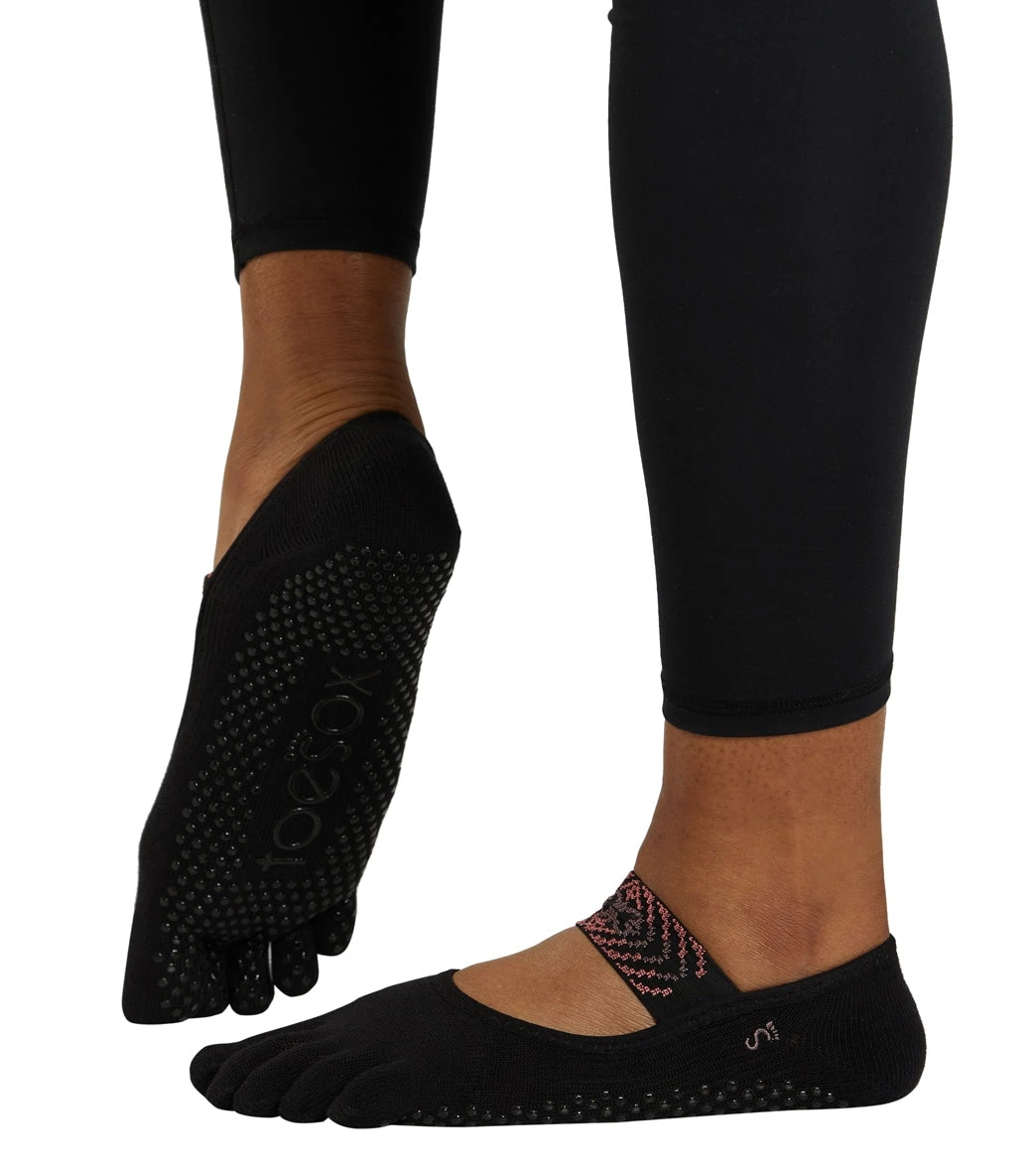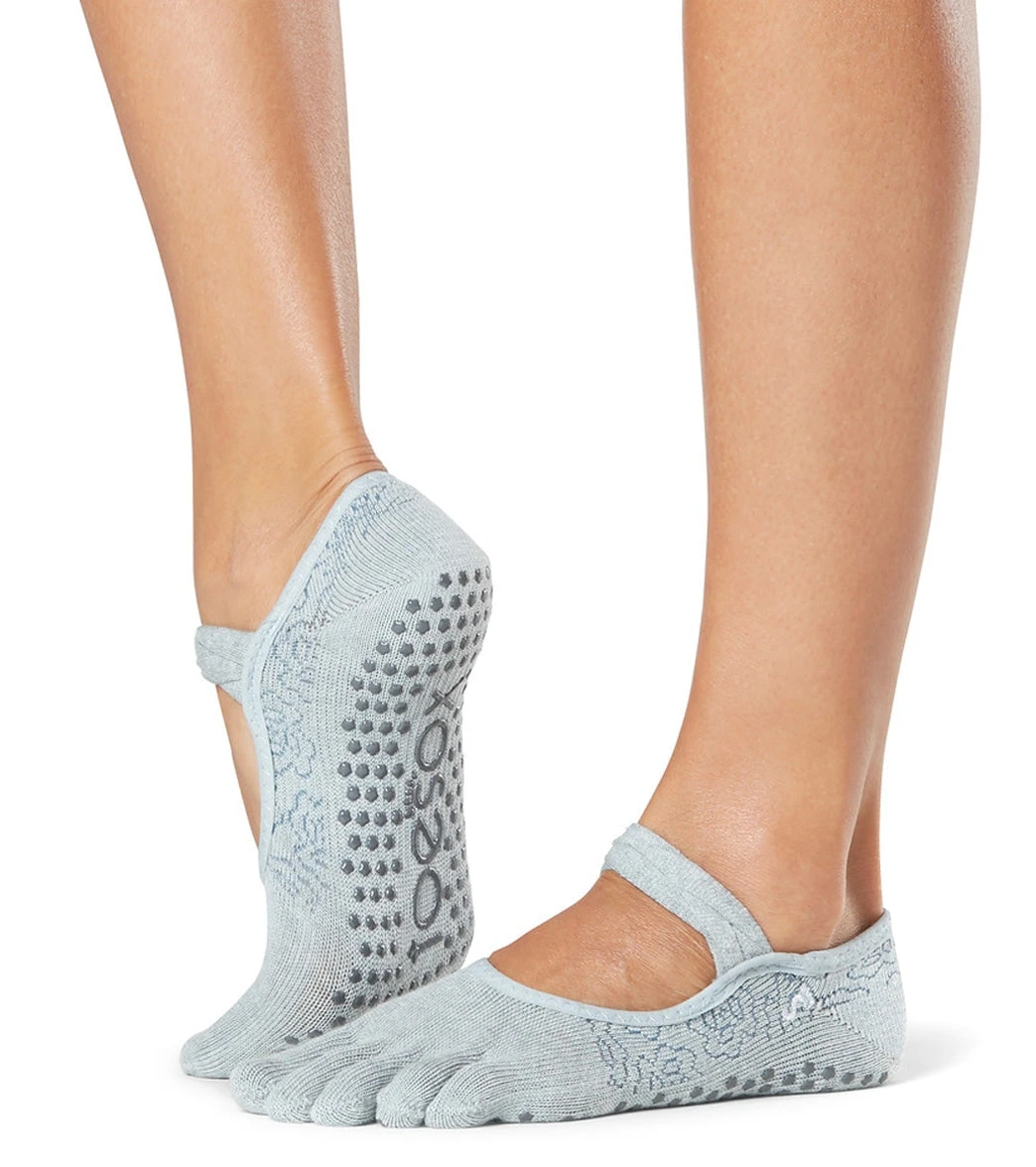 - Style Features: Ballet inspired Mia feels barely there and features ToeSox patented non slip sole for secure footing on any surface. The darling band keeps sock in place during Yoga, Pilates and Barre. Made with Organic Cotton.