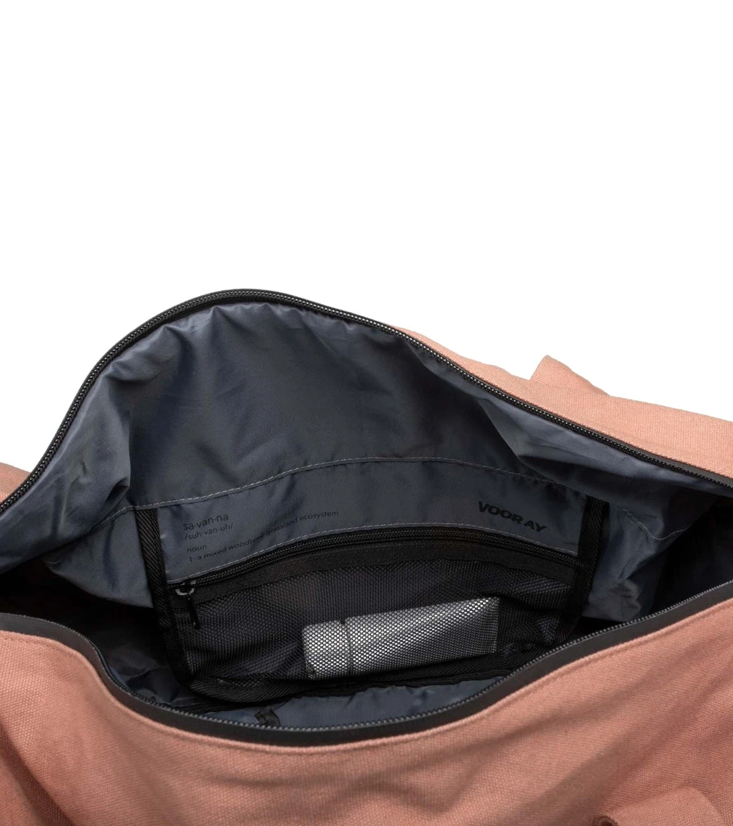Pack your bags and get ready for a weekend away with the Vooray Savannah Organic Duffel. Designed with extra space for that long weekend away, this duffel features a separate shoe pocket, an exterior side zip pocket, and a mesh interior zip pocket for organization. Wear the top grab handles on your shoulder or attach the adjustable shoulder strap and you’re ready to go.