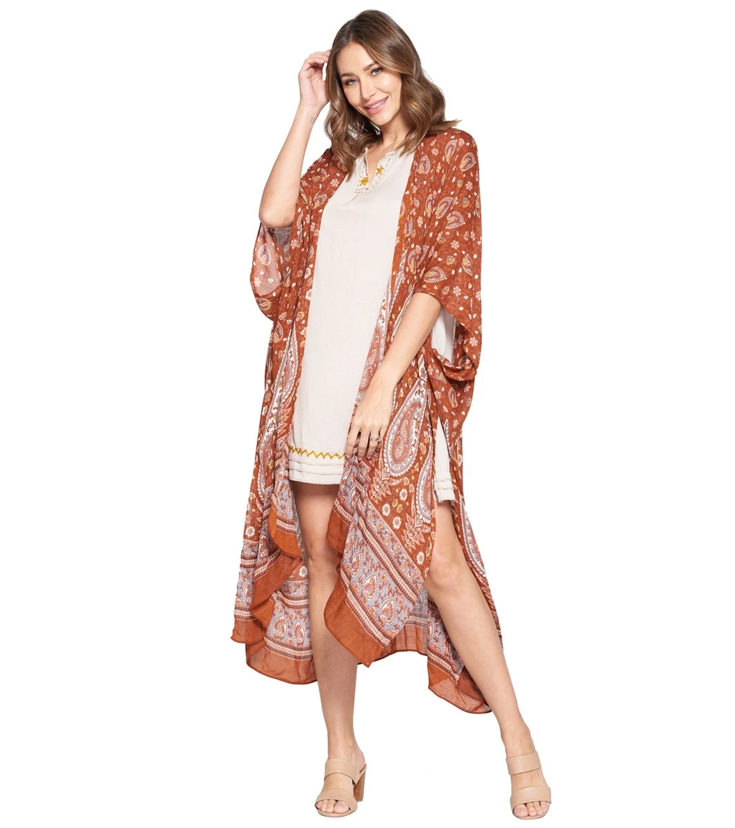 Cover up in the Yak & Yeti Kimono Wrap Paisley Floral.