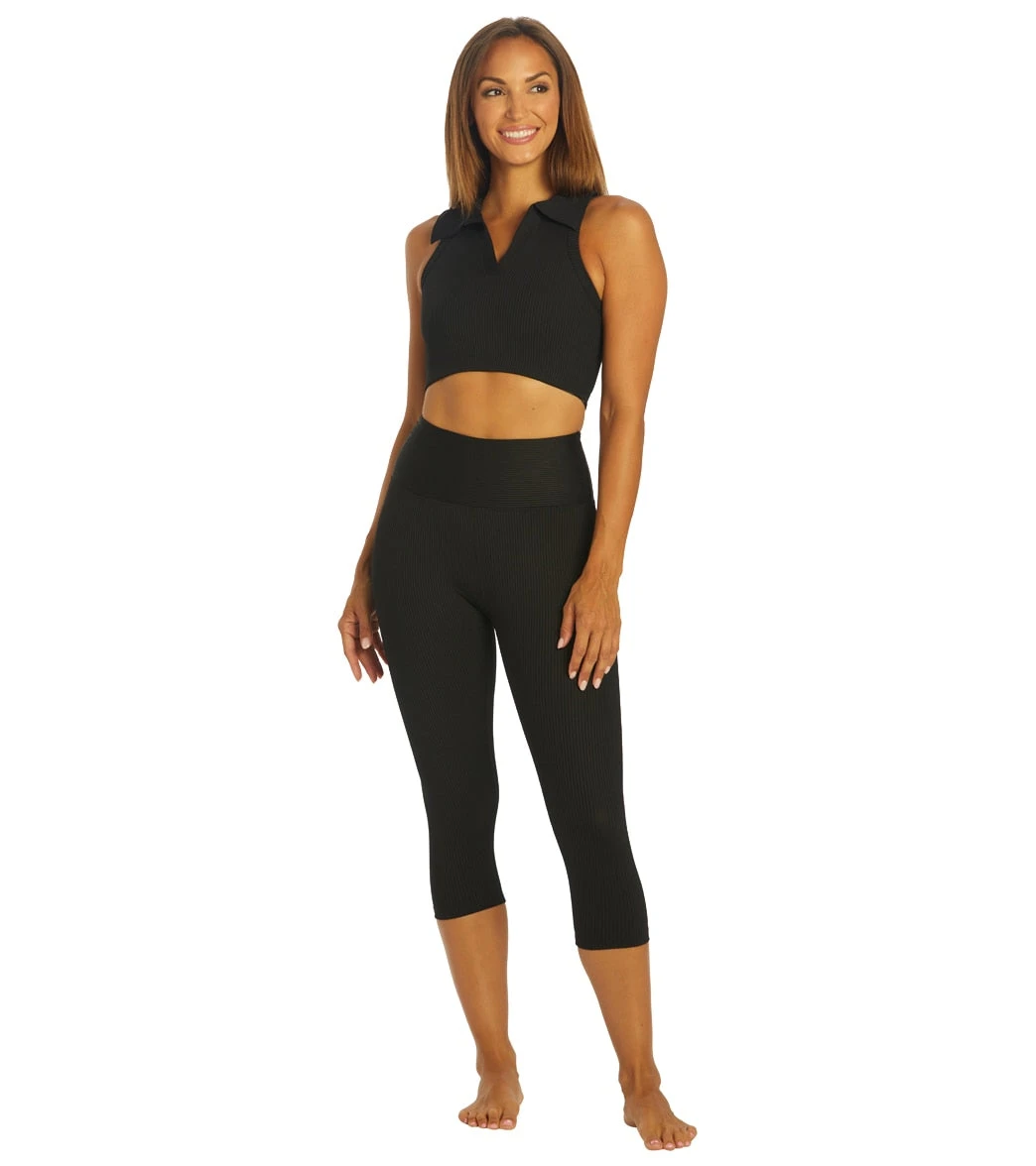 Namaste in place. Thanks to a triple-layer front waistband for moderate compression, that’s exactly what the soft, moisture-wicking Year of Ours Ribbed Capri Leggings will do – whether you’re downward-dogging or doing a dynamic workout.