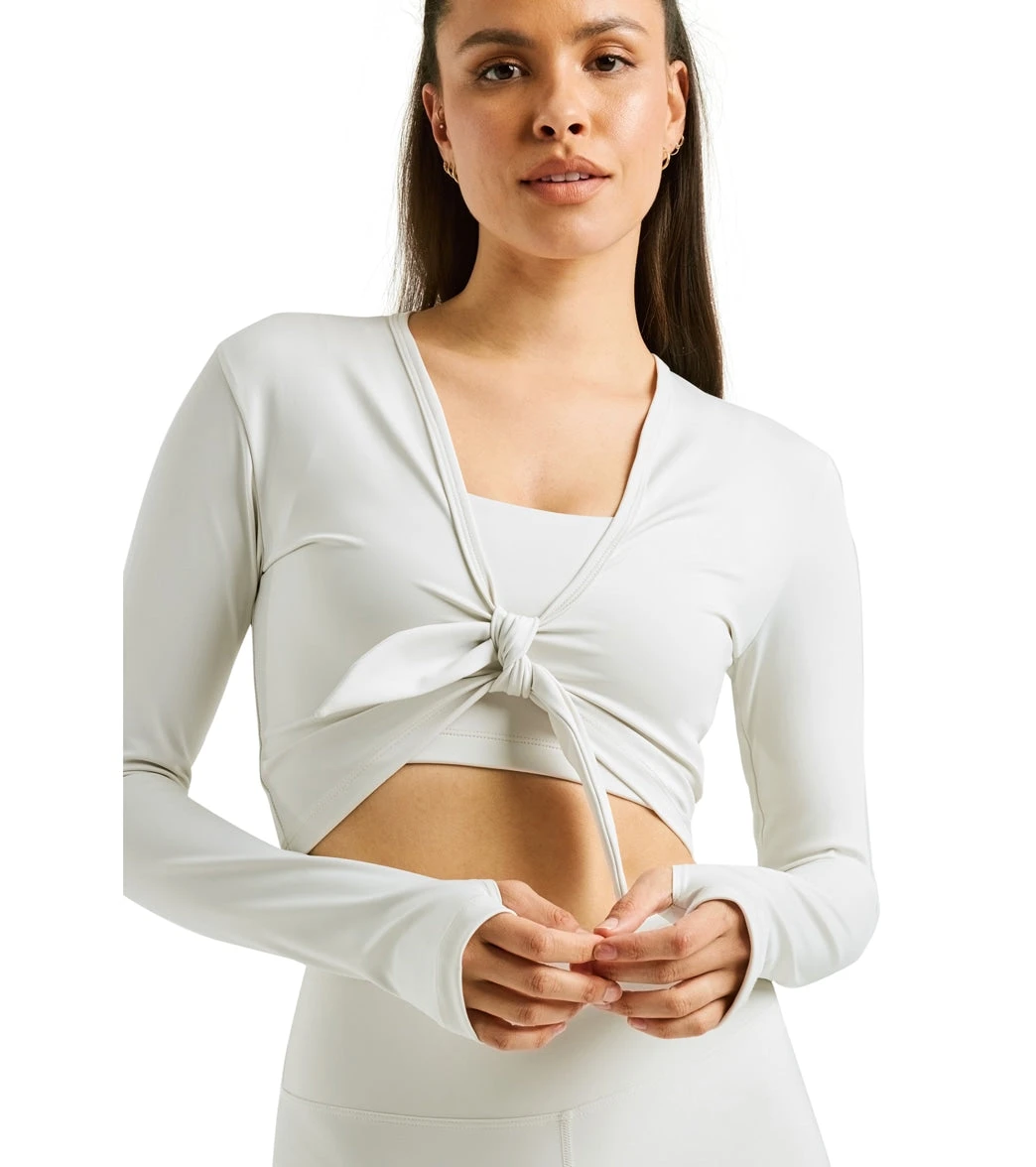 A coverup that keeps it flirty, but designed for fitness function?Say no more fam. The Year of Ours Tie Front Long Sleeve has an adjustable fit with an open-front tie and thumbholes at sleeve opening.